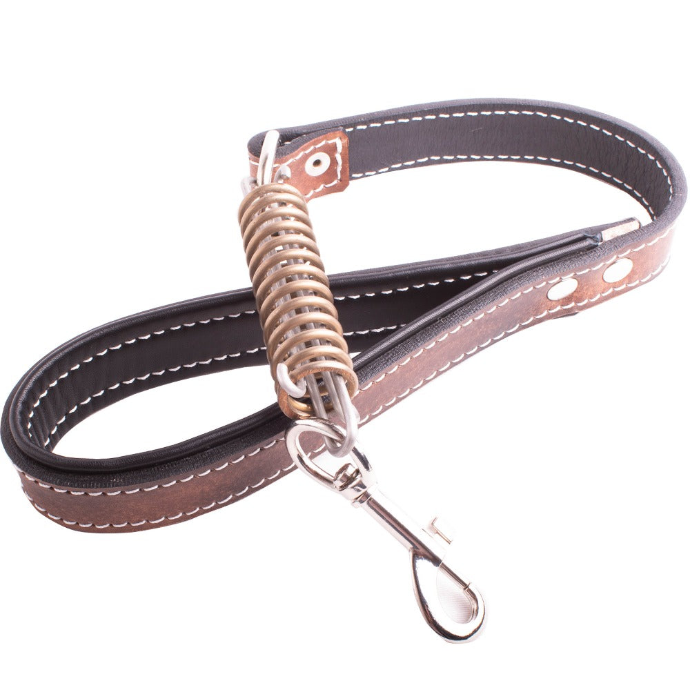 Leather strap. The handle incorporates padding lined with leather. It incorporates a spring to cushion the pulls.