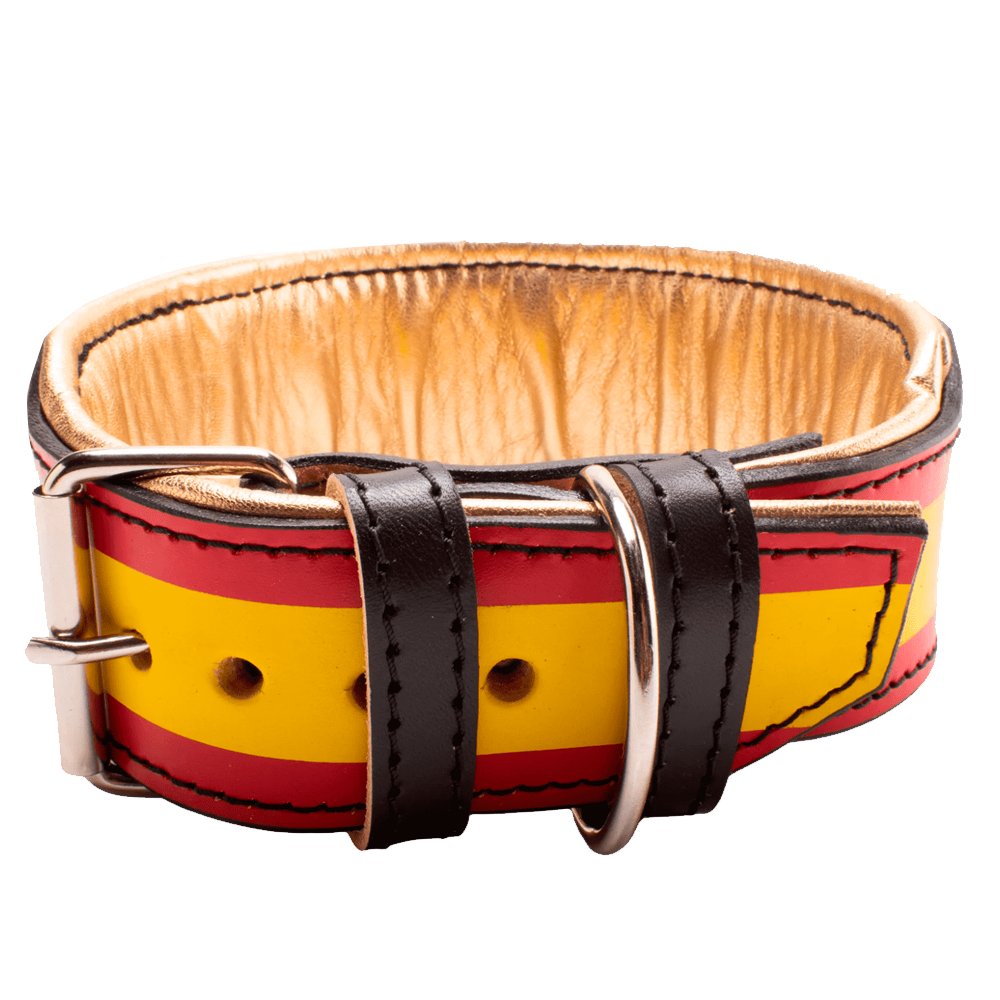 El interior de los collares lleva un acolchado que forramos con piel de cabra lo que le proporciona al collar un plus de calidad y comodidad.